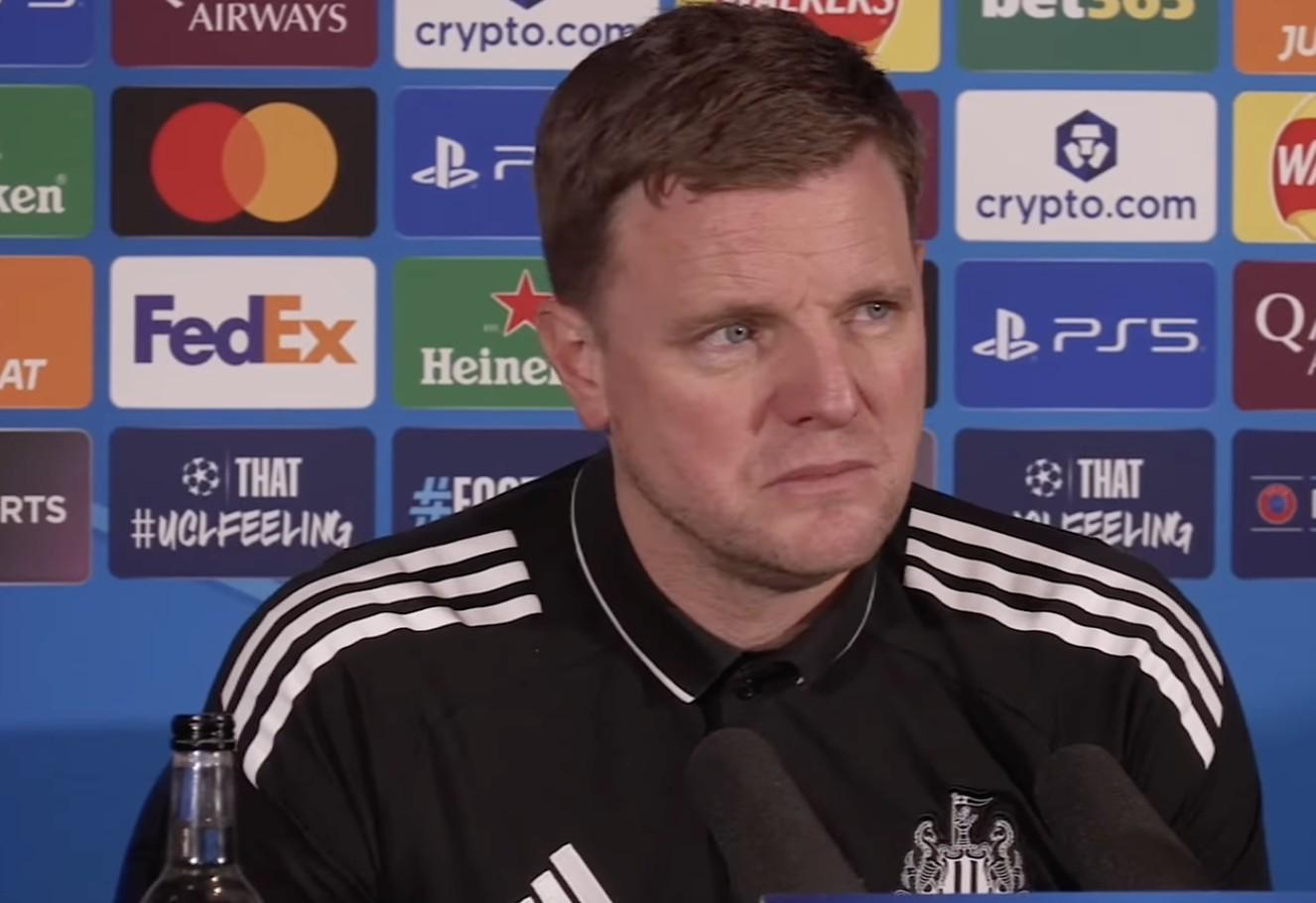 北京时间1月22日,欧冠联赛阶段第7轮,纽卡斯尔联3-0PSV埃因霍温。赛后,纽卡主教练埃迪-豪出席了发布会。